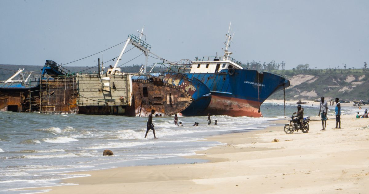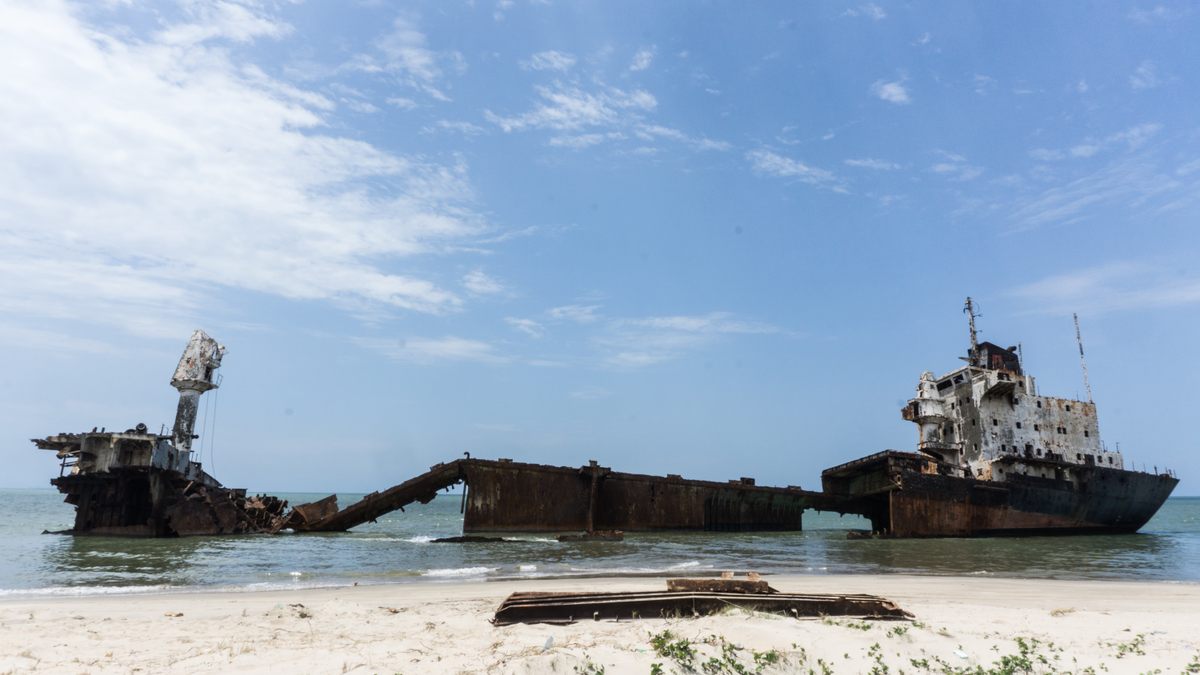 A cerca de 30 minutos de carro ao norte de Luanda, Angola , há uma visão de outro mundo: uma praia árida com até 50 navios enferrujados na costa ou perto dela. É como estar no set de um thriller pós-apocalíptico de Hollywood. Alguns dos navios estão próximos o suficiente para que você possa navegar até eles na maré baixa, enquanto outros estão mais longe, com não muito mais do que uma ponte enferrujada ou mastro acima da superfície do oceano.